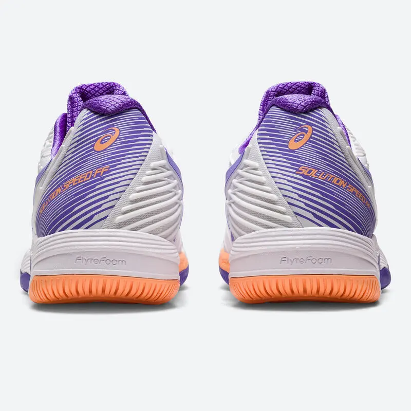 Compra en Decathlon Zapatillas de tenis Mujer multipista – Solution Speed FF blanco parma Estas zapatillas han sido concebidas para jugadoras de tenis de nivel experto que practican en tierra batida y que buscan un producto dinámico, cómodo y ligero.