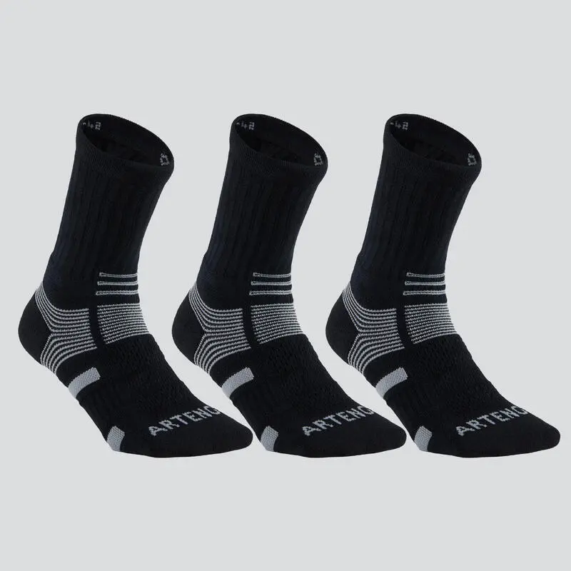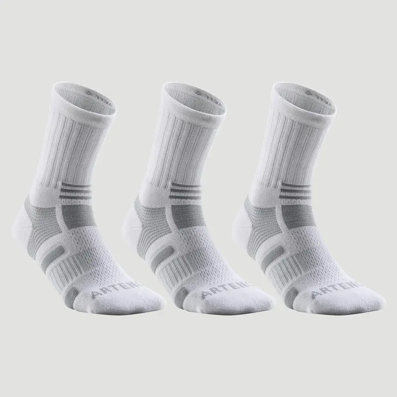 Compra en Decathlon CALCETINES LARGOS ADULTOS ARTENGO RS 560 LOTE DE 3 PARES Calcetines con refuerzos en puntera y talón concebidos para jugar al tenis con regularidad.