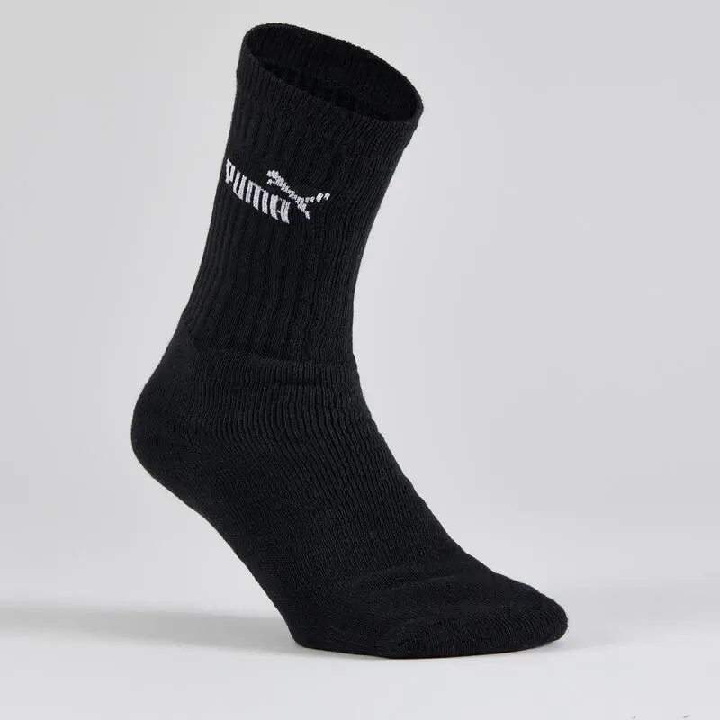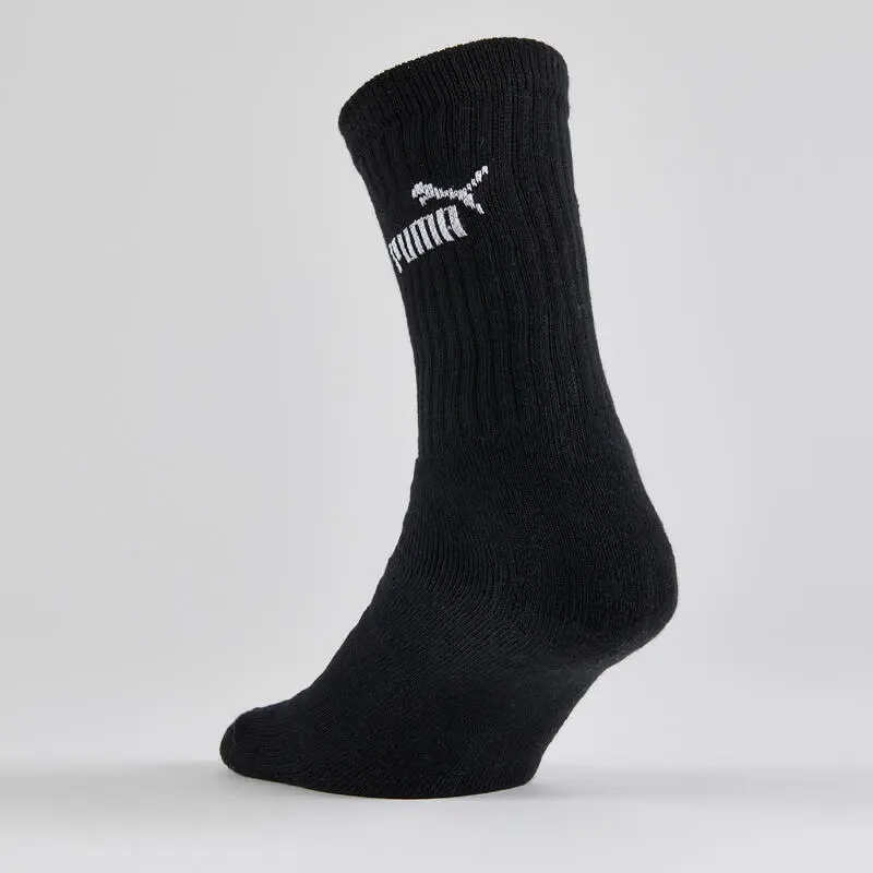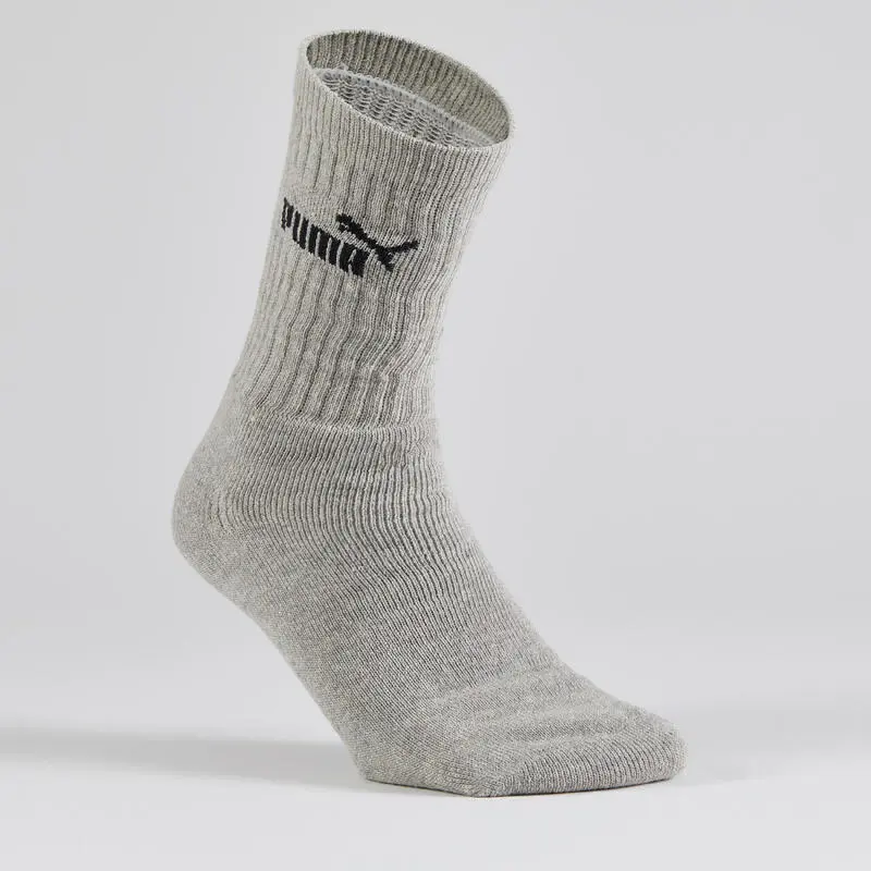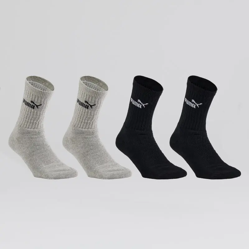Compra en Decathlon Calcetines altos de tenis Pack de 4 Puma gris negro algodón Para jugadores de tenis de nivel PERFECCIONAMIENTO practicantes de deportes de raqueta.