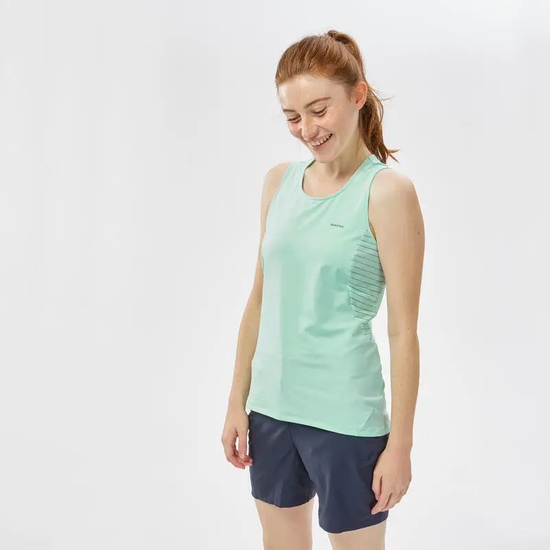 Compra en Decathlon Camiseta de montaña y trekking tirantes Mujer Quechua MH500 Nuestro equipo de senderistas, a los pies del Mont Blanc, ha concebido esta camiseta extensible y que evacúa la sudoración para mujeres practicantes regulares.