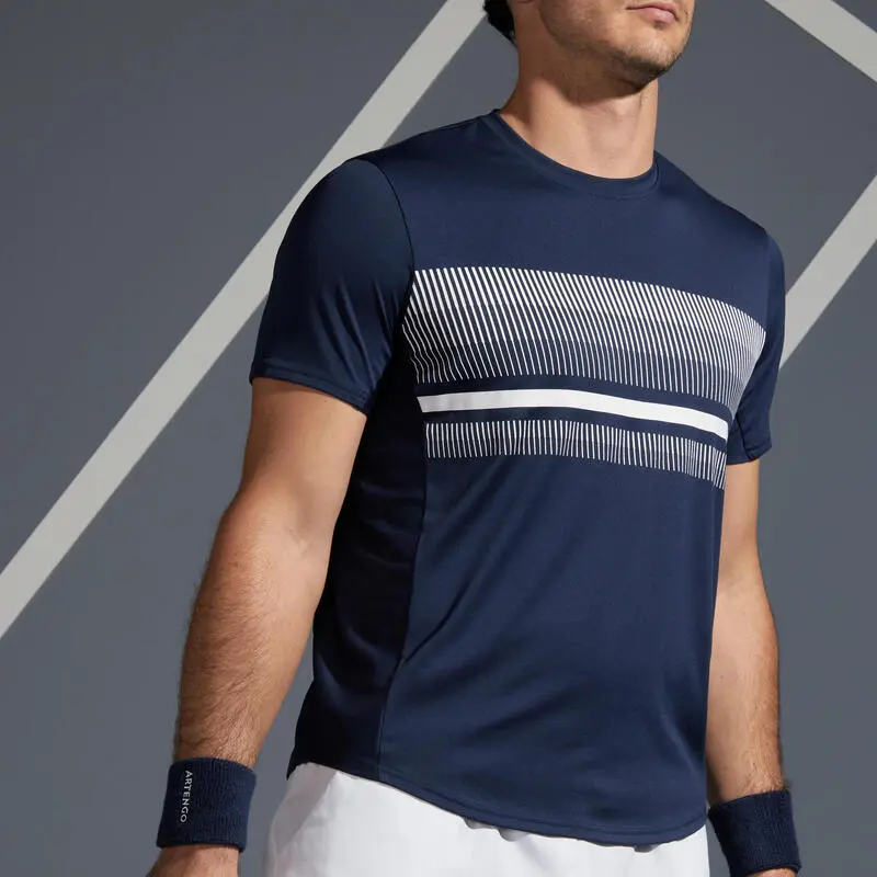 Compra en Decathlon Camiseta de tenis manga corta transpirable hombre Artengo TTS100 Nuestros equipos de diseño han desarrollado esta camiseta para que juegues al tenis seco y con total comodidad. También adecuada para otros deportes de raqueta.