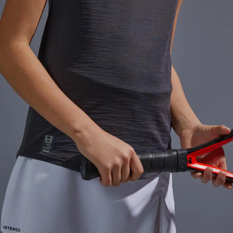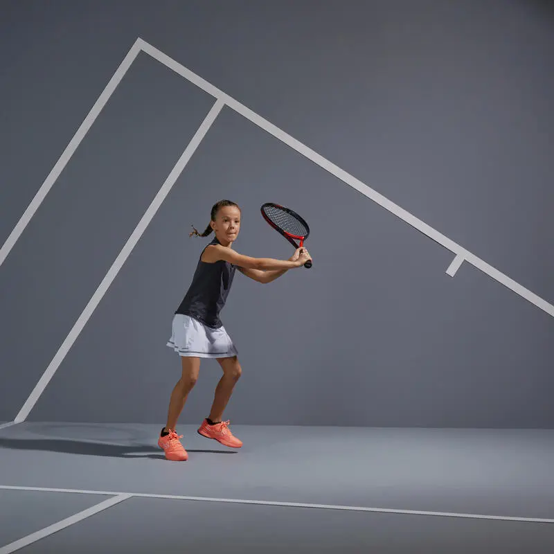 Compra en Decathlon Camiseta de tenis sin mangas Niña Artengo TTK900 coral Hemos diseñado esta camiseta sin mangas y sin costuras para niñas que quieren jugar al tenis u otros deportes de raqueta.