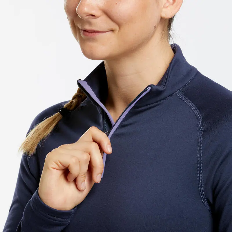 Compra en Decathlon Camiseta térmica interior de esquí y nieve 1/2 cremallera Mujer Wedze 500 Desarrollado para esquiadoras que practican con intensidad media (sudan normal) con tiempo frío y buscan una buena relación entre calidez y transpirabilidad.