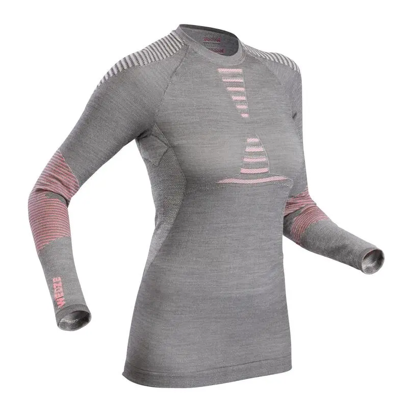 Compra en Decathlon Camiseta térmica interior de esquí y nieve lana merina Mujer Wedze Ski 900 Esta prenda interior térmica seamless está desarrollada para las esquiadoras que practican con intensidad (sudoración) con tiempo frío y que busca calidez y ligereza.
