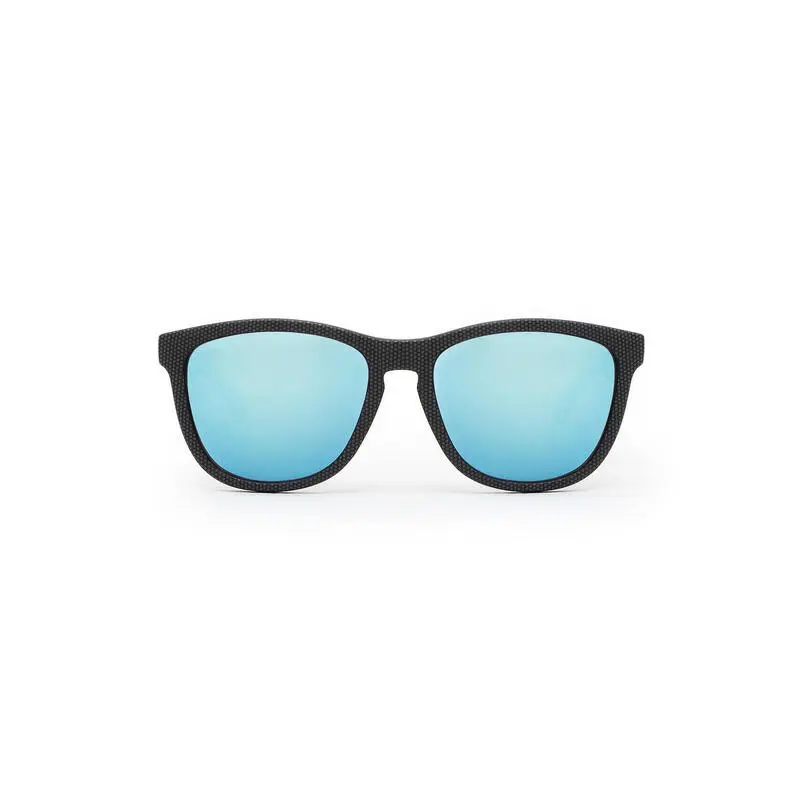 Compra en Decathlon Gafas de sol para Hombres y Mujeres POLARIZED ONE CARBON Dark Montura negra mate con print de fibra de carbono a rayas y lentes polarizadas negras.