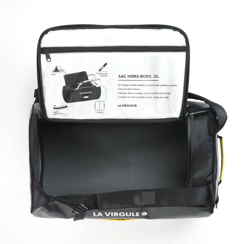 Compra en Decathlon Bolsa de viaje reciclada – Hors-Bord – 35L Negro Bolsa de viaje eco-responsable, duradera y cómoda, fabricada en el norte de Portugal