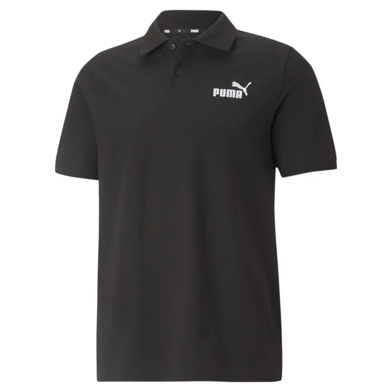 Compra en Decathlon Polo de piqué Hombre PUMA Essentials Negro Corte normal, Cuello acanalado con solapa de dos botones, Mangas acanaladas, Marca PUMA en la parte izquierda del pecho