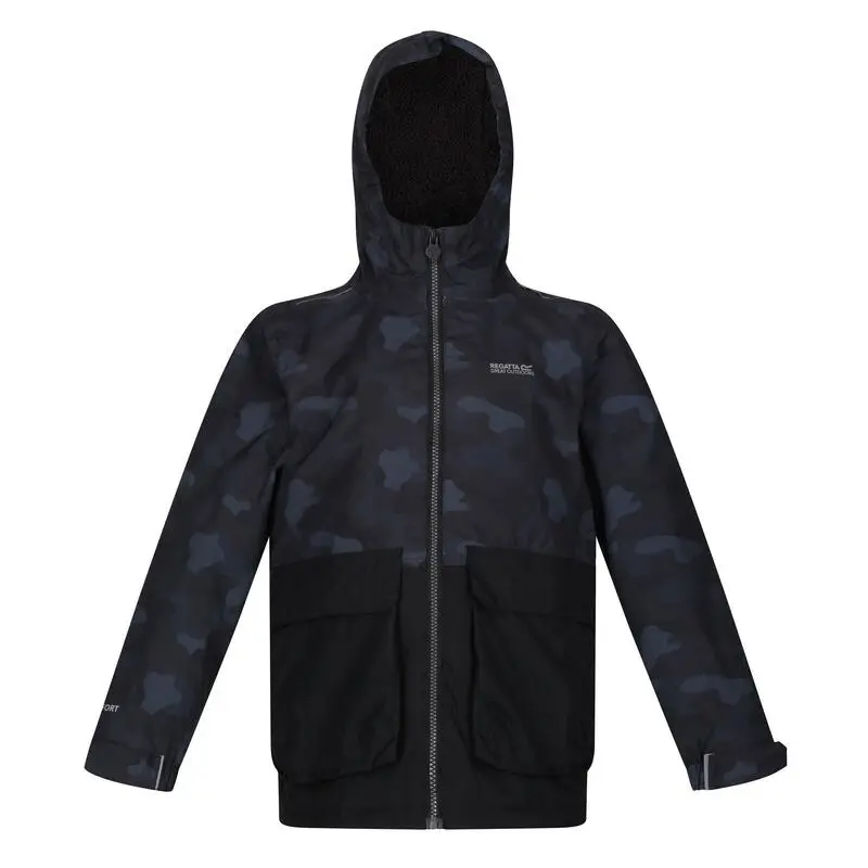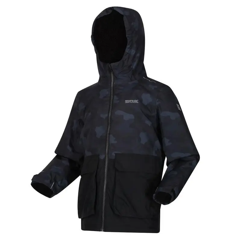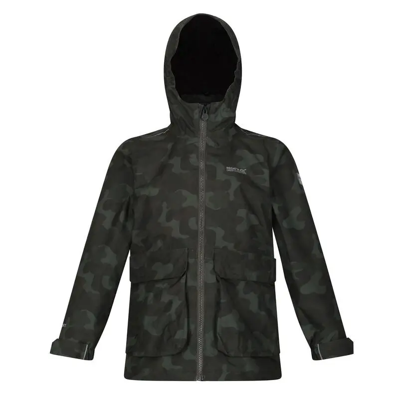 Compra en Decathlon Chaqueta Impermeable Salman Camuflaje para Niños/Niñas Negro Alta calidad Unisex-niños Senderismo de la naturaleza producto, Poliéster material, Marca: Regatta.